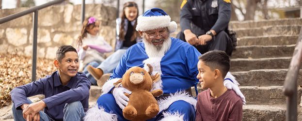 Blue Cares is the community outreach arm of the San Antonio Police Officers’ Association. Through service, giving, and connection, we’re here to support the children and families who need it most.